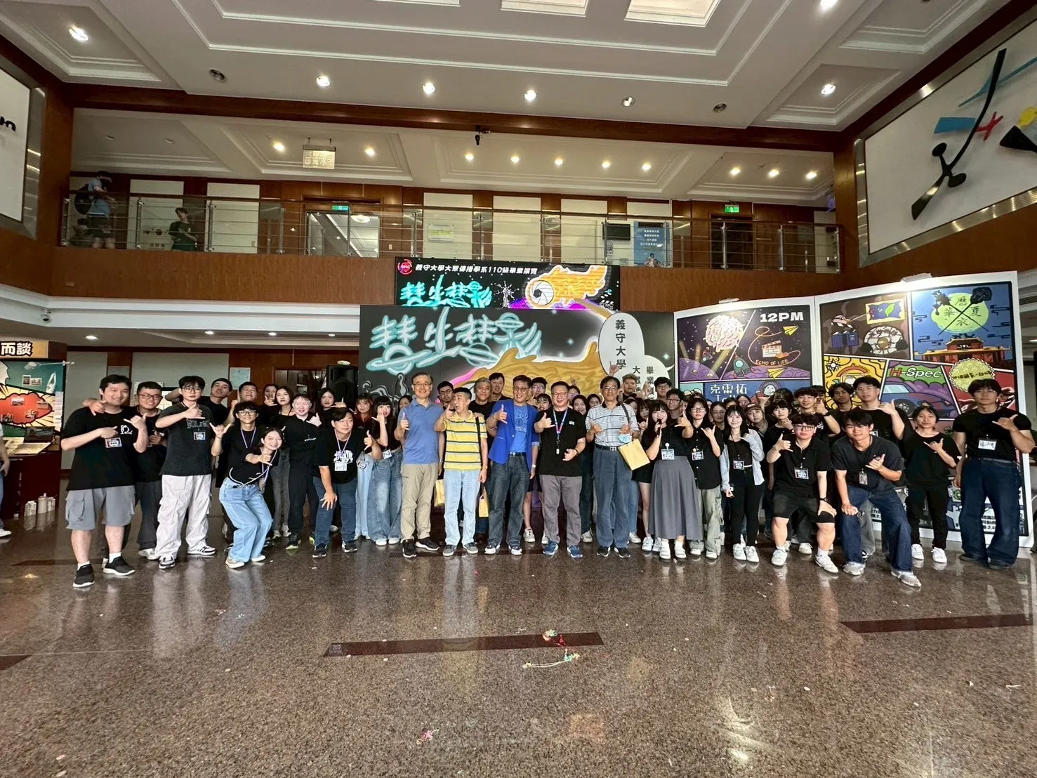 照片四、義守大傳系畢展 用影像繪出彗星級創意軌跡(本屆團隊大合影)。(照片來源:義守大學提供)。
